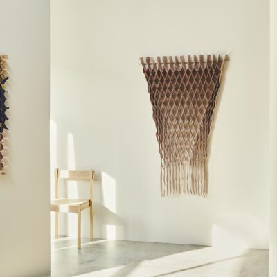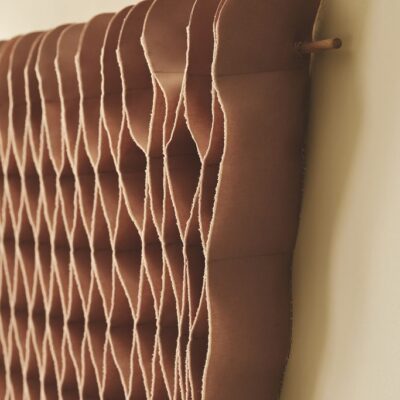 FLOW-kollektionen er en serie af håndlavet tekstilkunst med rødder i haute couturens flydende designteknikker, kombineret med udvalgte upcyclede tekstiler fra designindustrien. Dette giver kollektionen en sanselig 3D-effekt med ekstra taktilitet og skyggevirkninger – alt efter hvilken vinkel, man ser værket fra.